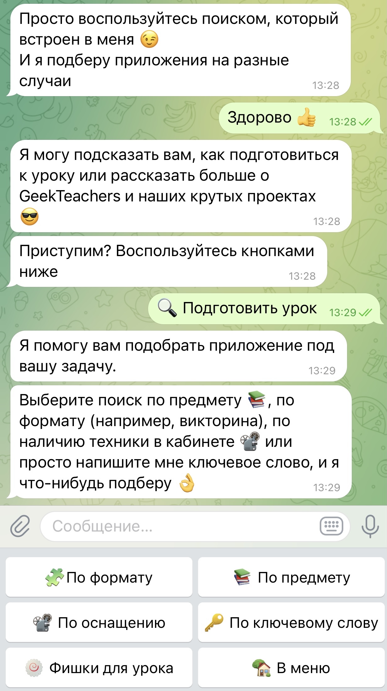 по предмету, формату (например, рабочие листы), наличию техники в классе или ключевому слову